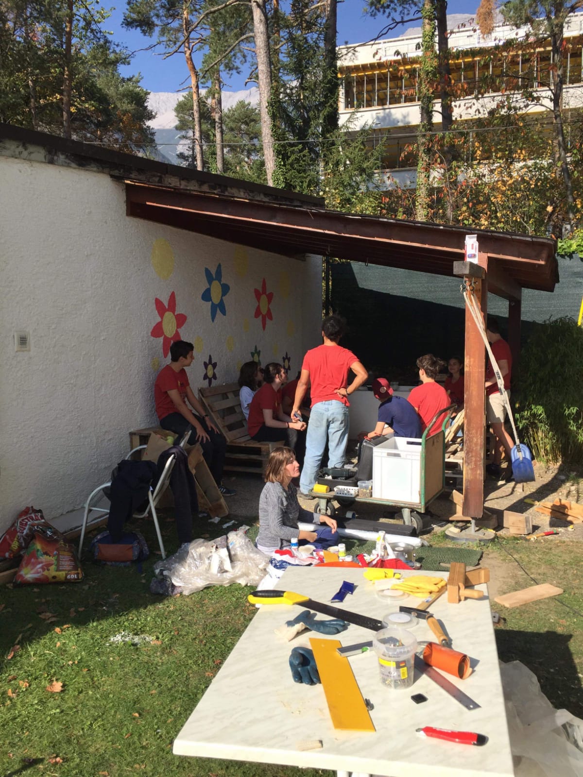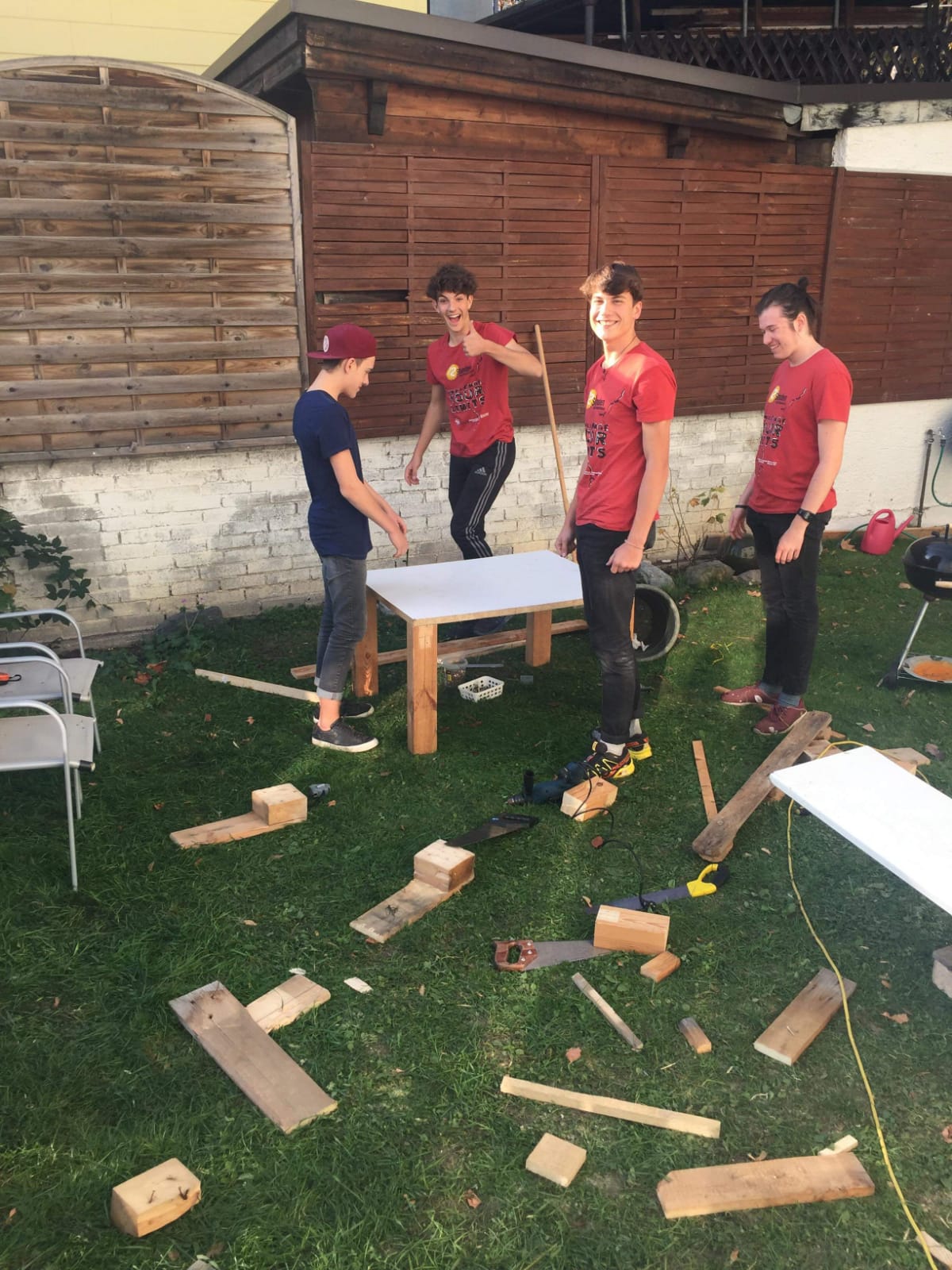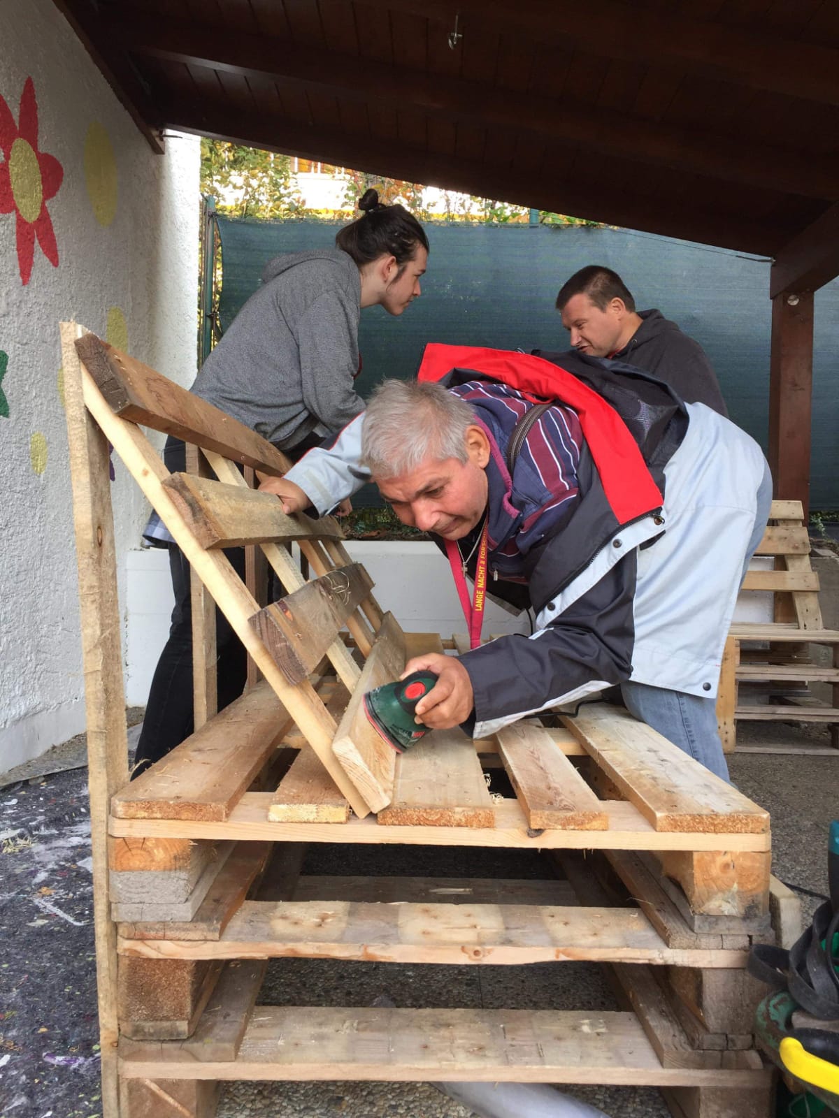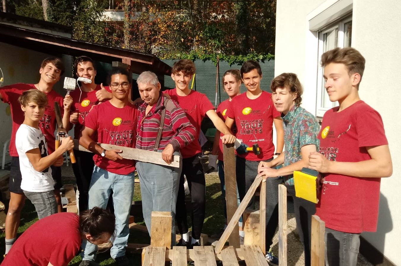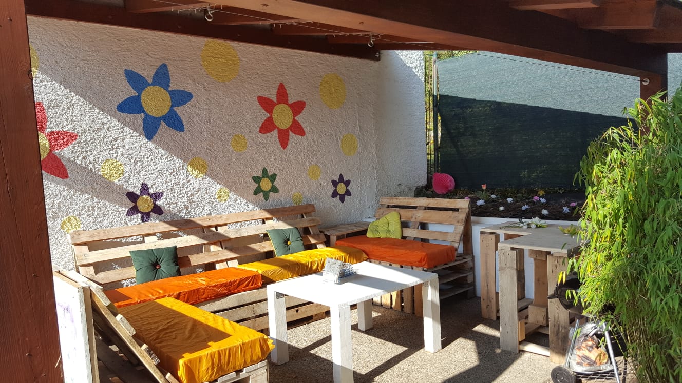 Eine Gruppe sehr engagierter Jugendlicher aus Tirol stellten sich einer besonderen Herausforderung. Unter dem Motto Lebensraum Garten waren der Kreativität keine Grenzen gesetzt. Im Garten unseres Wohnhauses Absam galt es, die desolate Lounge zu erneuern. Demzufolge war das Ziel, den Garten in einen wichtigen Lebensraum zu verwandeln. Die fertige „Chillout Area“ soll ein Ort des Wohlbefindens, der Begegnung und der Sinneswahrnehmung sein, den die BewohnerInnen gerne nutzen. Ihre Wünsche und Ideen flossen in die Planung mit ein. Gemeinsam mit unseren KlientInnen werkelten die Jugendlichen eifrig. Die vorhandenen Materialien – Holz und Europaletten – wurden abgemessen, zugeschnitten, gehobelt, abgeschliffen und zusammengefügt. Und das Ergebnis kann sich sehen lassen!