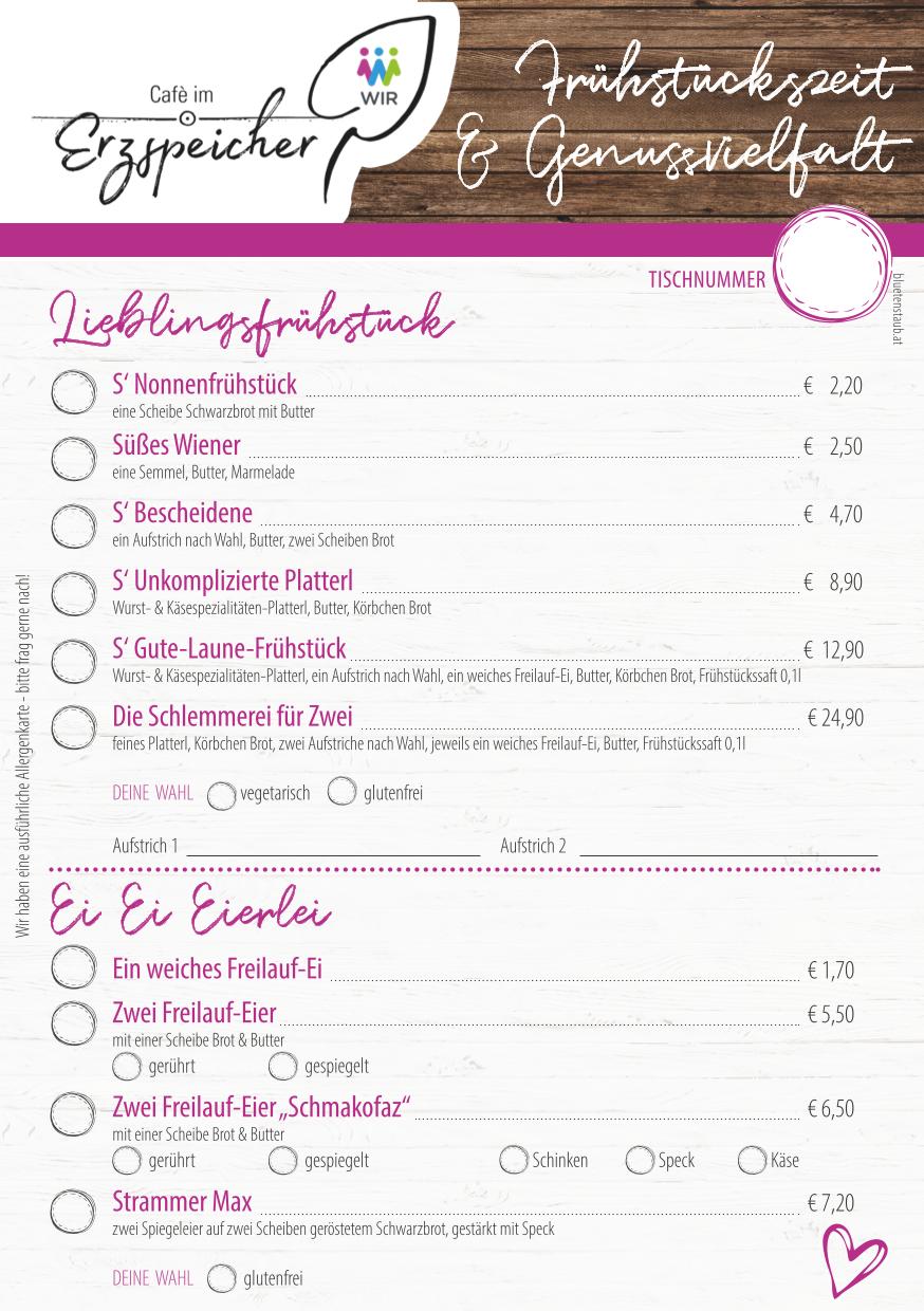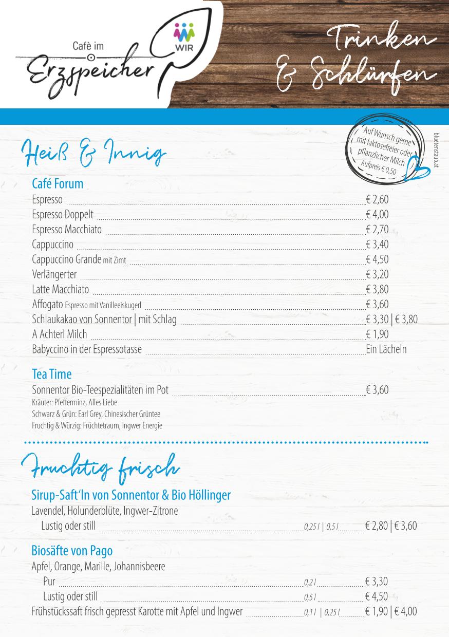 Überzeugen Sie sich selbst! WIR freuen uns über Ihren Besuch im Café im Erzspeicher samt einladendem Gastgarten.
