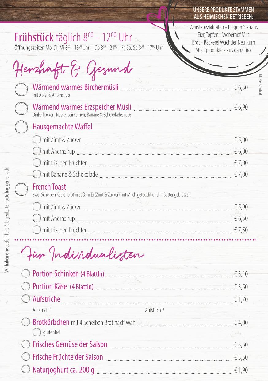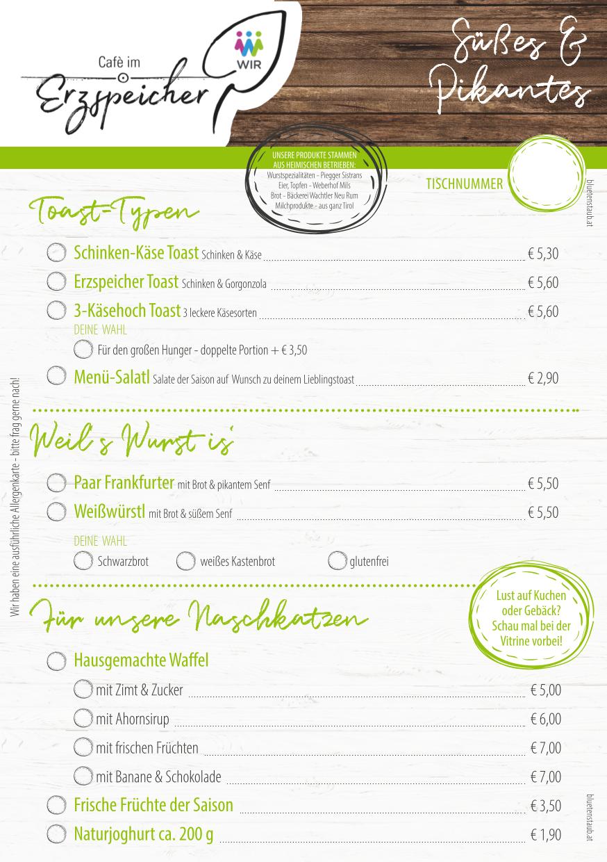Unsere Speisekarte: